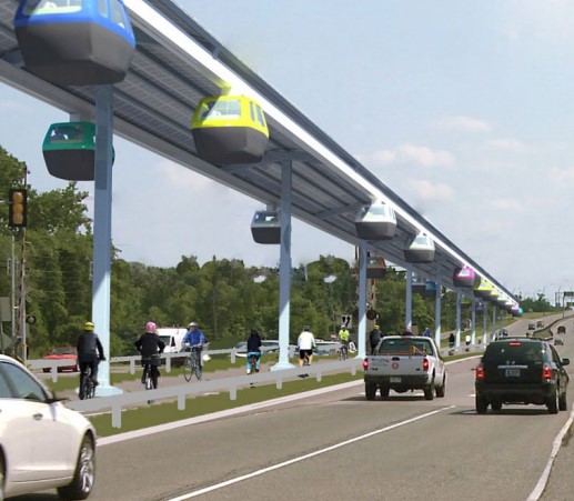 NCTCOG is accepting applications for possible projects using the JPods or TransPod technology. The deadline to apply is November 18. The city of Plano has submitted an application to find out more information about JPods. The pods are flipped upside down and move on a suspended grade-separated guideway, like a modern gondola. The pods are solar-powered, and the company is advancing this concept in several states with private funding.