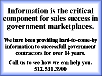 Keeping vendors abreast of information, updates and breaking news about where the American Recovery and Reinvestment Act (ARRA) dollars are going and how they're being spent is Strategic Partnerships Inc.'s new free, weekly, electronic newsletter, the State & Local Government Pipeline. Now in its second month of publication, the State & Local Government Pipeline is drawing rave reviews from subscribers throughout the country. To subscribe for your free copy of the State & Local Government Pipeline, click here. Get your free copy of the Texas Government InsiderThe Texas Government Insider is a free weekly newsletter. If you are not a subscriber, or if you would like to tell your friends or co-workers how to receive a free copy, click here. Permission to reproduce, reprintThis newsletter may be reproduced, and all articles within may be reproduced and/or reprinted without permission when credit is given to the Texas Government Insider, a publication of Strategic Partnerships, Inc. Note to media:Need expert commentary on procurement issues relating to state government, city and county government, K-12 public schools, higher education or healthcare? Our consulting team has more than 300 years of high-level experience in decision-making among these government entities. Give us a call at 512-531-3900 and we'll arrange an interview for you with one of our experts. |