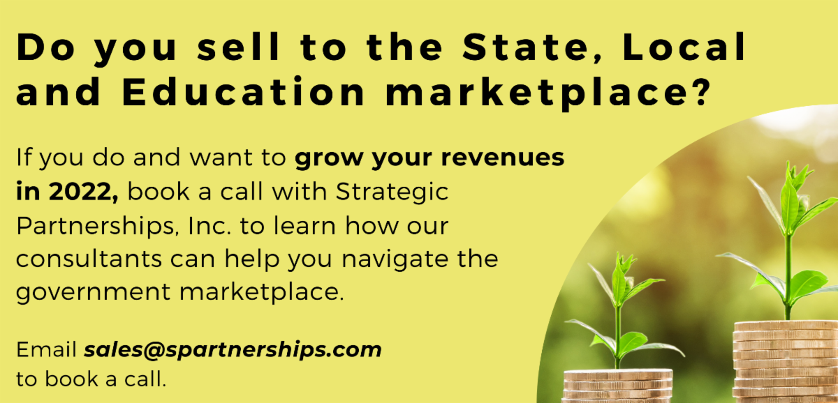 Government Contracting Pipeline, a publication of Strategic Partnerships, Inc., is a free, weekly newsletter detailing important happenings nationwide and the premier source for federal, state, and local government news and contracting opportunities.