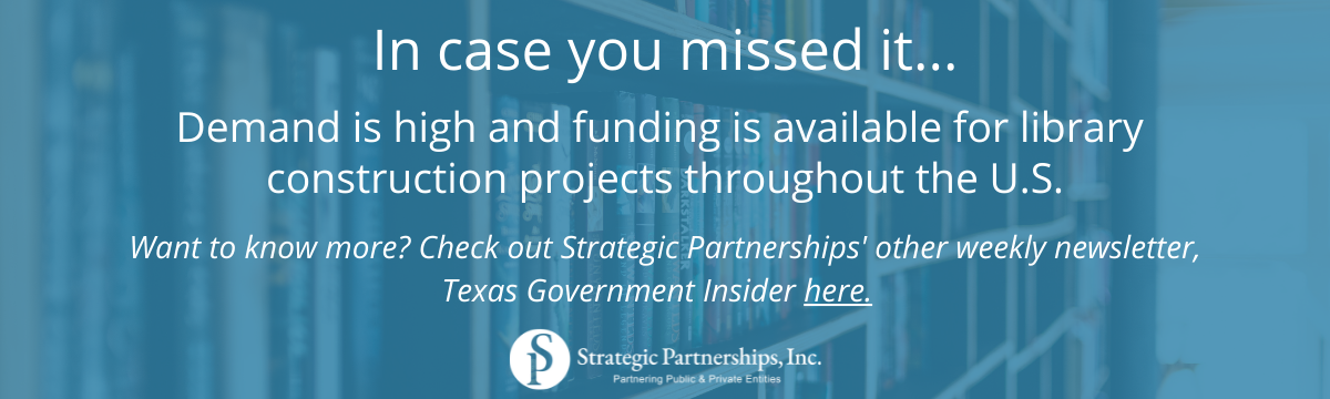 Government Contracting Pipeline, a publication of Strategic Partnerships, Inc., is a free, weekly newsletter detailing important happenings nationwide and the premier source for federal, state, and local government news and contracting opportunities.