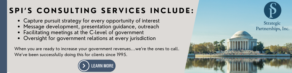 Government Contracting Pipeline, a publication of Strategic Partnerships, Inc., is a free, weekly newsletter detailing important happenings nationwide and the premier source for federal, state, and local government news and contracting opportunities. | |